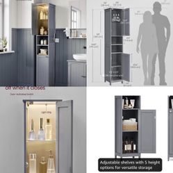 Tall Bathroom Cabinet with Lights, Slim Freestanding Bathroom Storage Cabinet with Adjustable Shelves, for Small Spaces, Modern, 15.7 Inch$55Ontario, CA