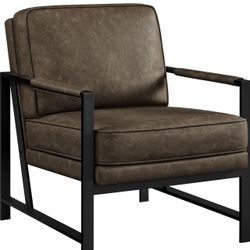 PU Leather Armchair, Retro Leisure Accent Chair with Extra Soft Padded and Cushion, Modern Reading Arm Chair with Black Metal Frame for Living Room/Of$130Fontana, CA