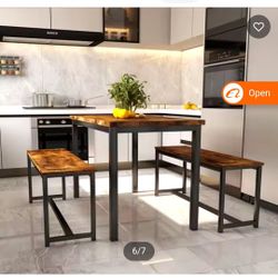 In Stock with 2 Benches MDF Rustic Brown Wooden Dining Table Set Metal Frame Space Saving for 4-6 People Luxury Dining Table Set$85Ontario, CA
