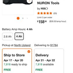 Hilti C 6-22 High Speed Charger and 4 Ah Battery$175Alta Loma, CA