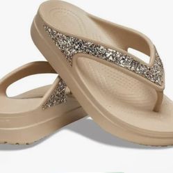 Beige Sparkle Crocs Size 7 Ana 8$30City Of Industry, CA
