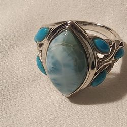 Pretty Ring đź’Ť 925 Silver With Larimar And Turquoise Stones $60Orange, CA