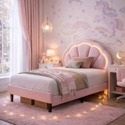 Twin Bed Smart LED Bed Frame with Storage Drawer and Adjustable Chic Double Petal Headboard, Princess Platform Bed for Girls/Kids, Solid Wood $70Fontana, CA