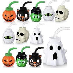 Umigy Paquete de 12 vasos de Halloween para niños, vasos de plástico reutilizables de 10 onzas con tapa y pajita, regalo a granel para suministros de $6Bloomington, CA