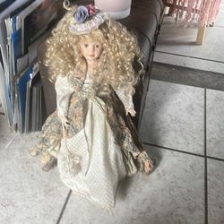 Large porcelain doll, blonde, curly hair, Victorian outfit with matching purse and hat$25Riverside, CA