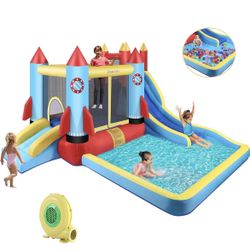 DREAMVAN Kids Bounce House with Blower Inflatable Bounce Houses Double Slide Climbing Wall and Ball Pit/Pool Splash Big Bouncy House Bouncing Rocket J$200Chino, CA
