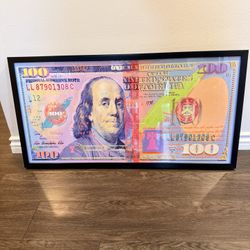 Art canvas one hundred dollar bill black frame with glass $199Anaheim, CA