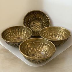 Vintage Hand-Hammered Solid Brass Bowls Set of 4 Stylized Figural & Geo Motifs$80Lake Forest, CA