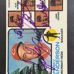 1973 TOPPS SPARKY ANDERSON, TED KLUSZEWSKI, GEORGE SCHERGER AUTOGRAPHED BASEBALL CARD$275Riverside, CA