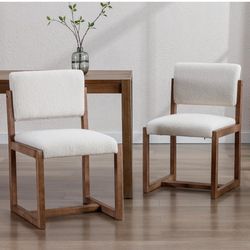 Vintage Sherpa Dining Chairs Set of 2, Farmhouse Open Back Kitchen Side Chairs with Solid Wood Legs Mid Century Armless Dining Room Chairs for Living $200Corona, CA