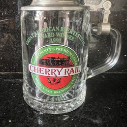 VTG Glass 16 oz Cherry Rail Beer Stein with pewter lid “1991” Beer Award Winner. Made in Italy$15Santa Fe Springs, CA