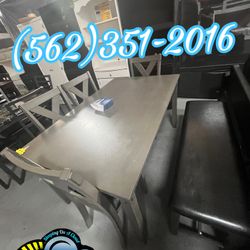 Six Seater Grey Table With Bench And Chairs New $699Riverside, CA