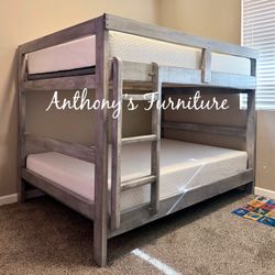Loft Bunk Bed Twin Over Twin Size with Ladder and Guardrail,Rustic Design,Metal Slats Support No Box Spring Needed$150Chino, CA