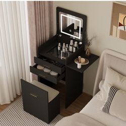 Small Vanity Desk Set with Flip-top Mirror and Lights Black Integrated 3 in 1 Makeup Vanities Set for Tiny Space Compact Mini Dressing Table with Fold$130Ontario, CA