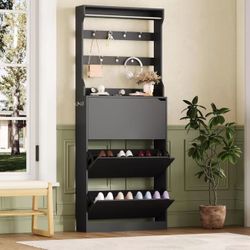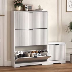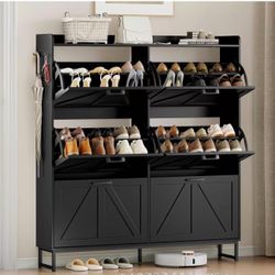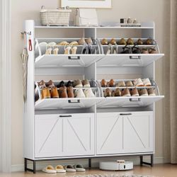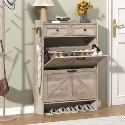 Shoe Cabinet with 4 Flip-Down Drawers, Farmhouse Storage Organizer with Adjustable Shelf, Narrow Freestanding Rack for Entryway, Hallway or Living Roo$140Ontario, CA
