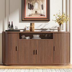 63" Sideboard Buffet Cabinet with Storage, Modern Fluted Accent Credenza with Sliding Doors, Drawers and Adjustable Shelves, Wood Coffee Bar Console T$180Jurupa Valley, CA
