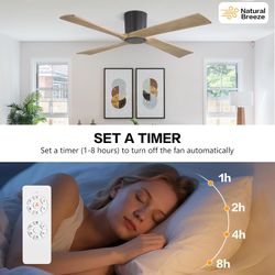 WINGBO 48 Inch Flush Mount DC Ceiling Fan Without Lights, 4 Carved Wood Blades, 6-Speed Reversible DC Motor, Low Profile Ceiling Fan No Lights for Ind$200Irvine, CA