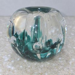 Murano Style Vtg Glass Paperweight Candle Holder Clear Green w/ Bubbles 3.5"$29Riverside, CA