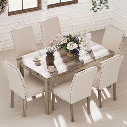 7 Pieces Wooden Dining Table Set Rustic Rectangle Table and Upholstered Chair for Kitchen, Restaurant$570Riverside, CA