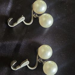 Pair of vintage faux pearl clip-on dangle earrings with a silver-tone setting.$20Calimesa, CA