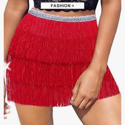 Red Fringe Belly Skirt Sequin Tassel Dance Skirt Short Belly Hip Scarf Rave Party Skirts for Women and Girls$10Fontana, CA