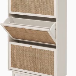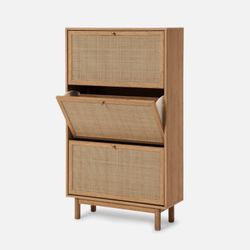 mopio Hannah Shoe Cabinet, Natural Rattan Farmhouse Shoe Storage Organizer, 3 Door Closet Rack for Entryway, Spacious Hallway Storage Cabinet with Doo$170Fontana, CA