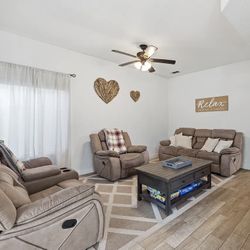 ✅️✅️4 pc Grey boucle fabric sectional sofa with storage chaise and love seat and pop up sleep area in center drop down tray tables✅️✅️✅️$798Buena Park, CA