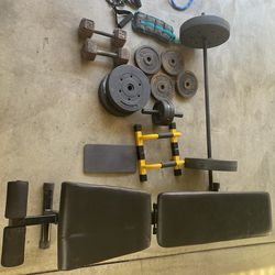 Weights with curl bar & convertable bench🥇$60Ontario, CA