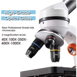 Microscope for Kids and Student, 40X-100X-250X-400X-1000X Magnification, Optics Glass Lens, Dual-Light Illumination, Extra 25X Ocular Lens and Microsc$99Corona, CA
