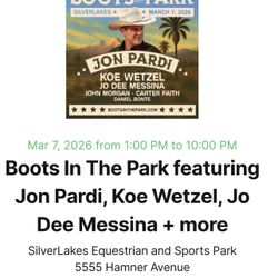 1 Ticket — Boots In The Park$100Bellflower, CA