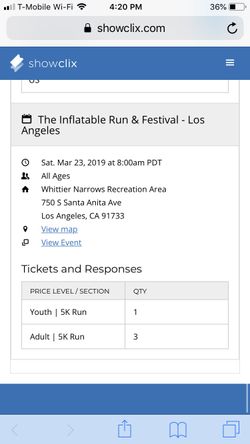 Inflatable Run tickets 3/23: 3 adult and 1 kid$40Norwalk, CA