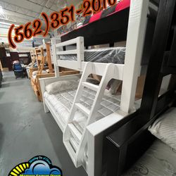 Twin Full White Wash Bunk Bed With Mattresses Colchones Nuevos New $999La Habra Heights, CA