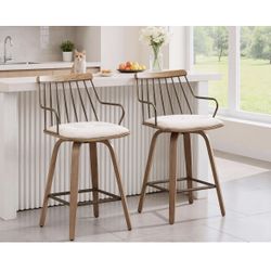 Swivel Counter Height Bar Stools Set of 2, 26" Mid-Century Modern Counter Stools with Spindle Back Arms & Bentwood Frame, Upholstered Wood Barstools f$99El Monte, CA