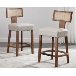 Modern Farmhouse Rattan Bar Stools Set of 2, 26" Counter Height Barstools with Woven Back Linen Upholstered Seat,Wood Frame Kitchen Island Stools for $80El Monte, CA