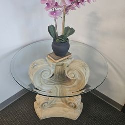 Neoclassical Plaster Pedestal Table with Round Glass Top $1,700Irvine, CA