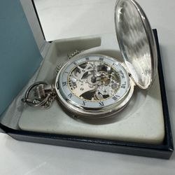 Woodford Sterling Silver Full Hunter Skeleton Pocket Watch Mechanical w/ Chain$900Dana Point, CA