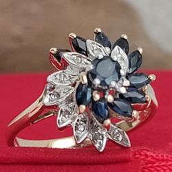 ❤️10k Size 7.75 Amazing Solid Yellow Gold Dark Sapphire and Diamond Ring!/ Anillo de Oro con Zafiros y Diamantes! 👌🎁Post Tags: 10k 14k$395Fullerton, CA