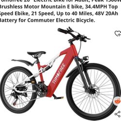 Tomofree 26" Electric Bike for Adult, Peak 1500W Brushless Motor Mountain E bike, 34.4MPH Top Speed Ebike, 21 Speed, Up to 40 Miles, 48V 20Ah Battery $300City Of Industry, CA