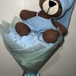 Handmade Crochet Teddy Bear & Blue Rose Bouquet $65Santa Ana, CA