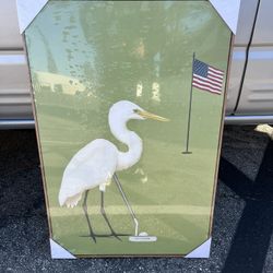 SIGNWIN Framed Canvas Print Wall Art Golfing White Egret Whimsical Bird on Golf Course with Flag Illustrations Modern Art Decorative Chic for Living R$25Orange, CA