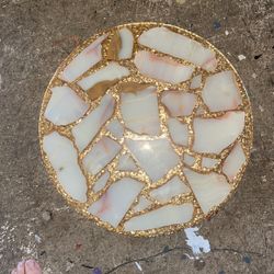 Hollywood Regency Gold Iron Scroll Agate Stone Specimen Resin Table Top$180Long Beach, CA
