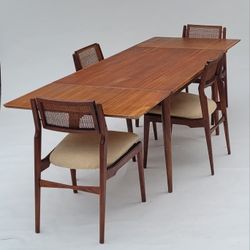 Mid Century Modern 1960s Gudme Mobelfabrik Danish Teak Table with Four Teak Frame Wicker Back Chairs$1,500Irvine, CA