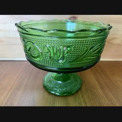 Emerald Green Glass Compote Scalloped Edge Mid-Century Pedestal Candy Dish MCM Vintage Green Glass by E.O. Brody 1960s$25Carson, CA