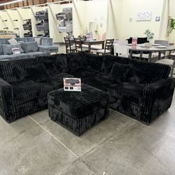 Gorgeous Fur-like Jumbo Black Corduroy Sectional Sofa With Ottoman $529Bellflower, CA