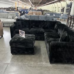 New! Jumbo Corduroy Sectional, Black Corduroy Sectional, Plush Sectional, Soft Corduroy Couch, Black couch, Black Sofa, Black Sectional And Ottoman$529Corona, CA