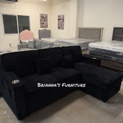 New sectional Sofa With USB Ports, Sectional And Ottoman, Black Couch, Black Sofa, Black Fabric Sectional Couch, Sofas, Reversible Chaise Sectional$799Chino, CA