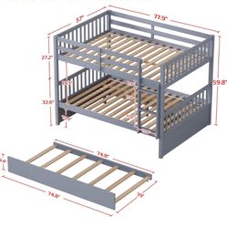 Full Over Full Bunk Bed with Trundle, Wood Full Bunkbed Frame with Safety Rails and Ladders, Convertible to 2 Platform Beds$100East Los Angeles, CA