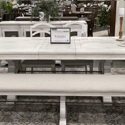 Farmhouse Style 6 Piece Dining Set White and Gray upholstered seats Seats 6 - Table, 4 chairs and bench$519Chino, CA