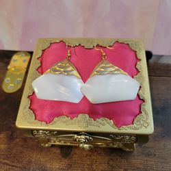 White Mother of Pearl Shell Dangle Earrings 2" Goldtone Accents F11$13City Of Industry, CA