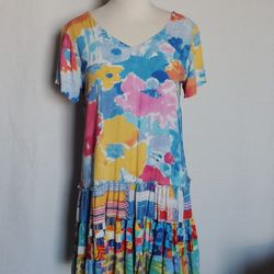 Jams World Dress Multicolor 3-Tier Ruffle Floral/Patchwork ~ Size Small 36"$40Anaheim, CA